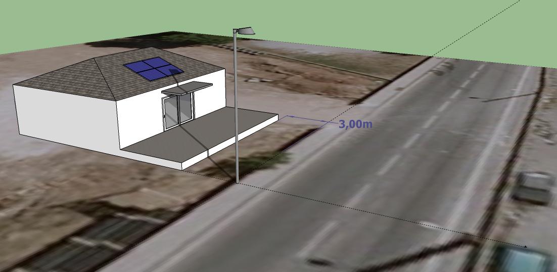 - Implanter le candélabre comme indiqué ci-dessous. Implanter l'ensemble des 4 panneaux au milieu du toit côté sud et le plus bas possible de manière à ce qu'il n'y ait aucun masque (zone d'ombre) tout au long de l'année.